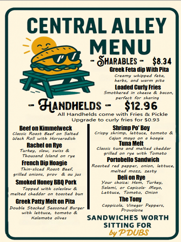 We are adding a new element, outdoor seating! Fresh with new tables, chairs, umbrellas, and a special menu! Our outdoor area we want to coin a new name!, The "Central Alley!" A cozy, refreshing place to enjoy a quick delicious meal, while also enjoying the best weather that western new york has to offer. We are only a short walk from the water, and have many businesses near us with staff looking for places to dine outside! We strive to serve you some new favorites in our new outdoor environment. We are looking for Live bands for the summer to play, we may even do a few karaoke nights! Come enjoy our Patio!